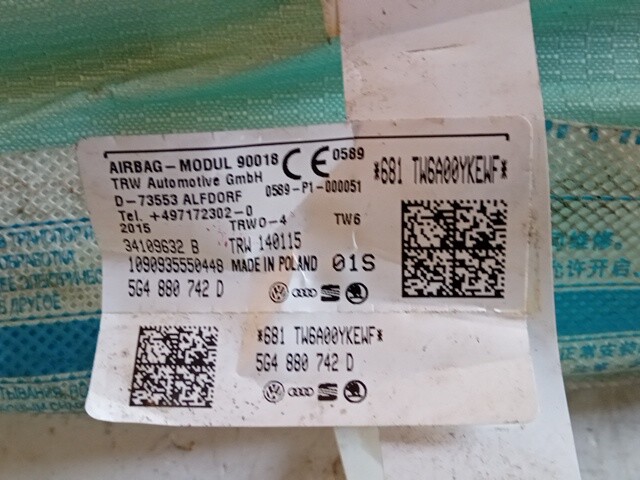| Descrizione | AIRBAG A TENDINA DESTRO VOLKSWAGEN GOLF VII 2015 5G4880742D |