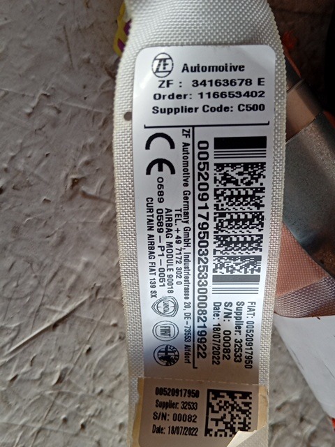 Codice: R2025-0005303 Marca: FIAT Tipo articolo: Airbag a tendina sinistro Disponibilità: 1