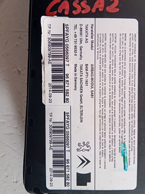 Codice: R2025-0001026 Marca: CITROEN Tipo articolo: Airbag sedile passeggero Disponibilità: 1