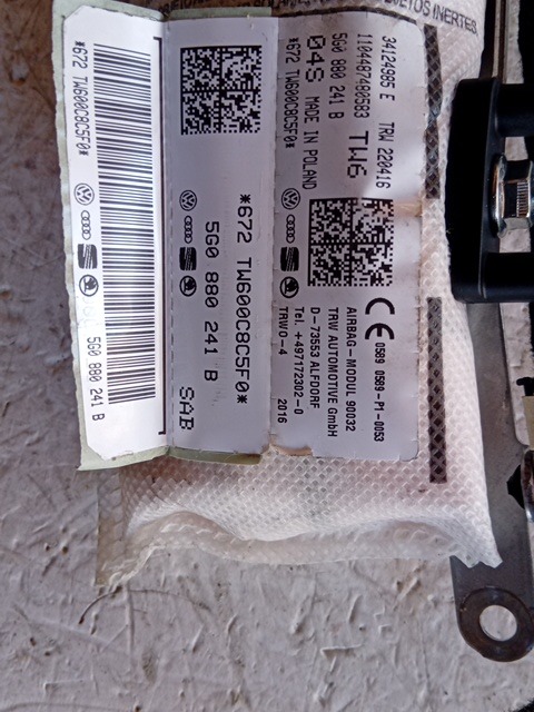 | Descrizione breve | AIRBAG SEDILE PASSEGGERO VOLKSWAGEN GOLF VII 2015 5G0880241B |