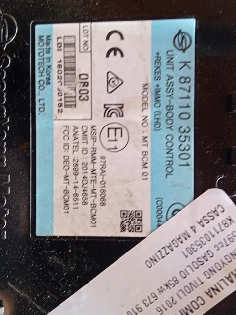Descrizione CENTRALINA COMFORT SSANGYONG TIVOLI 2016 1.6 T.D. K8711035301
